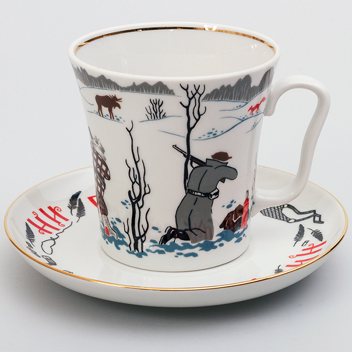 Чайные/кофейные парыЧайная пара,пиала → Бокал с блюдцем, рис. "Ни пуха, ни пера" 360 мл (форма "Ленинградский")